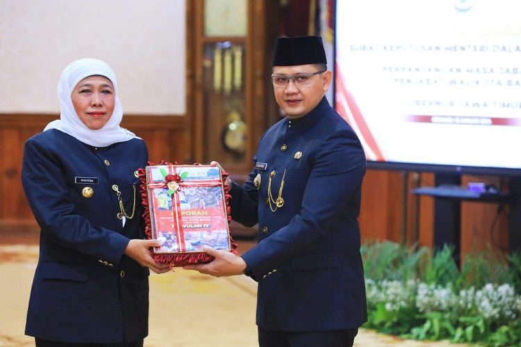 Surabaya, Nawacita | Gubernur Jawa Timur Khofifah Indar Parawansa menyerahkan Surat Keputusan (SK) Menteri Dalam Negeri Nomor 100.2.1.3-72 Tahun 2024 tentang Perpanjangan Masa Jabatan Penjabat (Pj) Wali Kota Batu kepada Aries Agung Paewai.