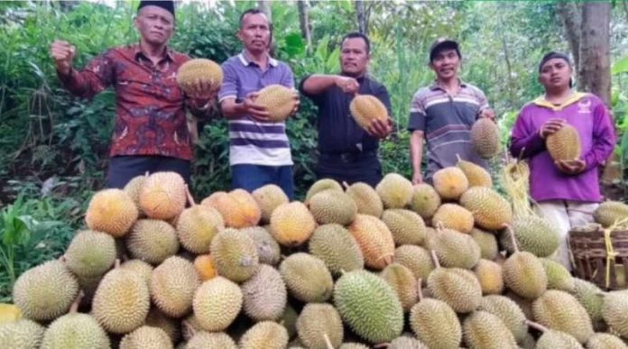 Sebab para petani tengah memanen raya durian di kebunnya. Setiap hari tak kurang dari sepuluh ribu durian dipanen dan dijual ke kota.