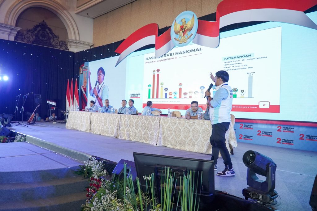 “Berdasarkan survei Indikator, bila pemilihan dilakukan hari ini maka Prabowo -Gibran di Jatim akan menang 56.2%. Ini adalah capaian yang luar biasa. Tentunya ini harus kita kawal dan terus mobilisasi Pemilih Prabowo Gibran sampai dengan hari H,” ujar Mizan.