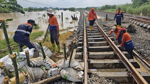 PT KAI terus berupaya untuk melakukan perbaikan terhadap rel yang terendam banjir sehingga perjalanan dapat segera kembali normal. antr