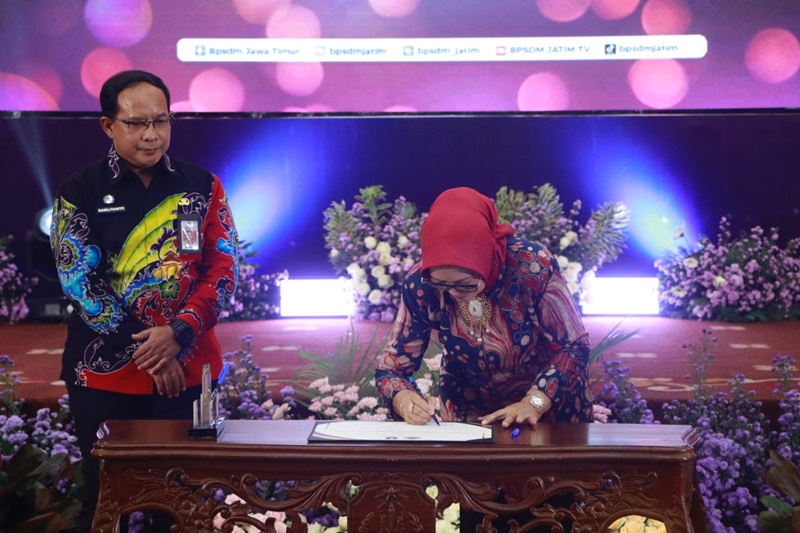 Hasil Penandatanganan Komitmen Kerjasama oleh Dekan FEB, Prof. Sukesi dengan Kepala BPSDM Jatim, Ramliyanto.