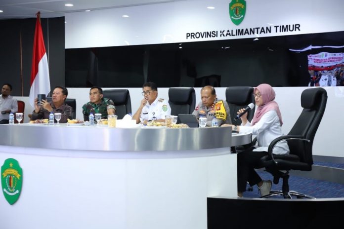 Tampak hadir pada video conference Pangdam VI/Mlw Mayor Jendral TNI Tri Budi Utomo, Kapolda Kaltim Irjen Pol Nanang Avianto, Sekda Kaltim Sri Wahyuni, Kajati Kaltim, serta Perangkat Daerah. kltmprv