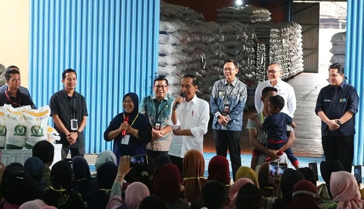 Pada kesempatan itu Presiden menyalurkan secara simbolik bantuan pangan beras kepada perwakilan masyarakat yang hadir.