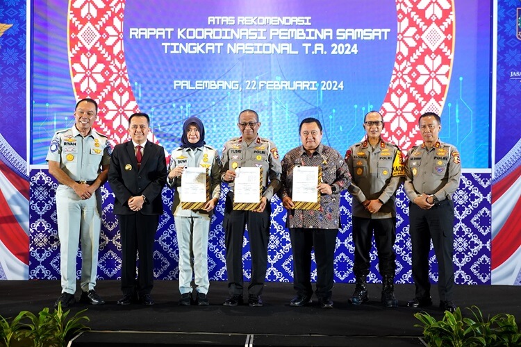 Palembang, Nawacita | Pj Gubernur Sumsel Agus Fatoni menghadiri Rapat Koordinasi Pembina Samsat Tingkat Nasional Tahun Anggaran 2024 bertempat di The Arista Hotel Palembang, Kamis, (22/2/2024).