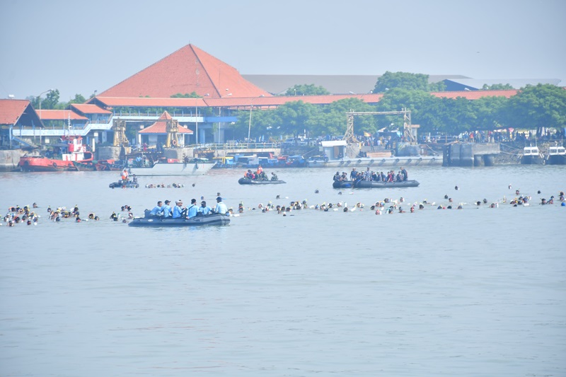 Kegiatan spektakuler Fin Swimming Selat Madura yang digelar TNI AL tersebut, dilepas oleh Kasal Laksamana TNI Dr. Muhammad Ali, dari lokasi start di dermaga Kamal Bangkalan, Madura menuju finish di area Komando Armada (Koarmada) II, Ujung, Surabaya.