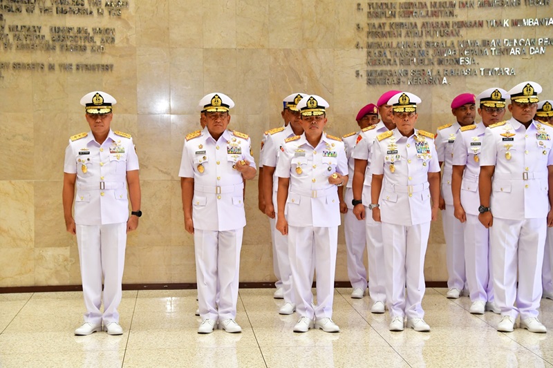 Jakarta, Nawacita – TNl AL-Puspenerbal, Komandan Pusat Penerbangan TNl Angkatan Laut (Danpuspenerbal) Laksda TNl Sisyani Jaffar menghadiri Serah Terima Jabatan (Sertijab) Empat Pejabat Utama Mabesal yang dipimpin Kepala Staf Angkatan Laut (Kasal) Laksamana TNI Dr. Muhammad Ali di Lobi Gedung R.E. Martadinata Mabesal, Cilangkap Jakarta Timur, Selasa (27/2/2024).