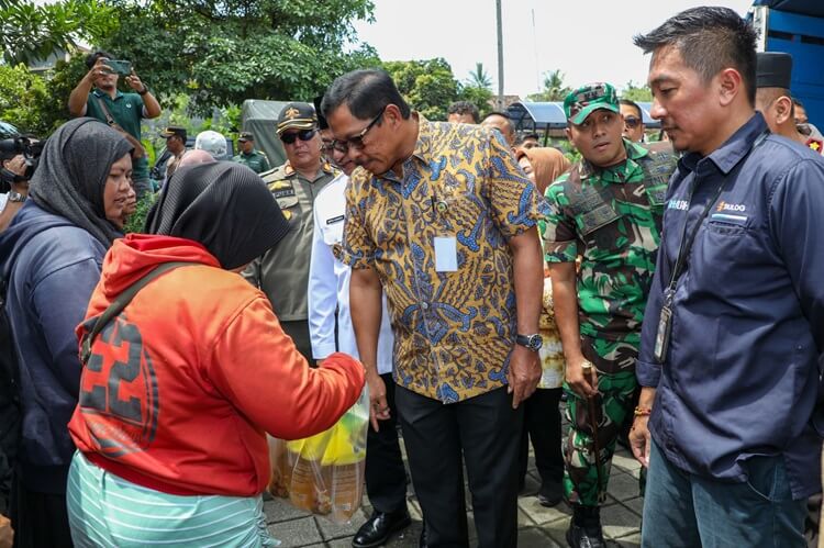 Gerakan Pangan Murah (GPM) dan penyaluran bantuan cadangan pangan Pemprov Jateng di Kantor Kecamatan Mungkid, Kabupaten Magelang, Rabu (28/2/2024).