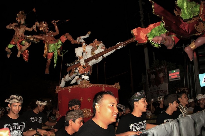 Pawai berbagai patung yang mewakili aspek negatif kehidupan manusia, dilakukan sehari sebelum Hari Raya Nyepi di setiap banjar di Bali