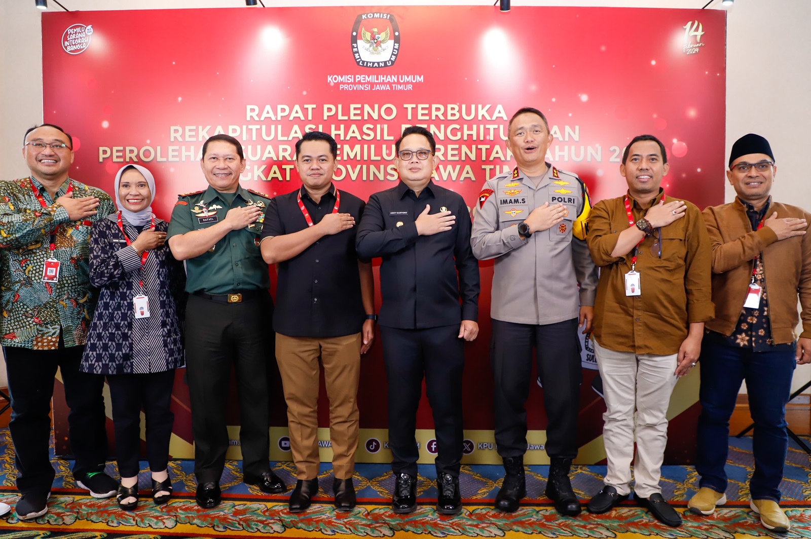 Pj Gubernur Adhy Tinjau Rekapitulasi KPU Jatim Bersama Forkopimda