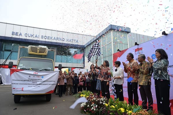 Pelepasan vaksin produksi Bio Farma tersebut dilakukan oleh Menteri Luar Negeri (Menlu) Retno LP Marsudi dan Menteri Keuangan (Menkeu) Sri Mulyani Indrawati, Kamis (07/03/2024), di Bandar Udara (Bandara) Soekarno Hatta, Tangerang, Banten.