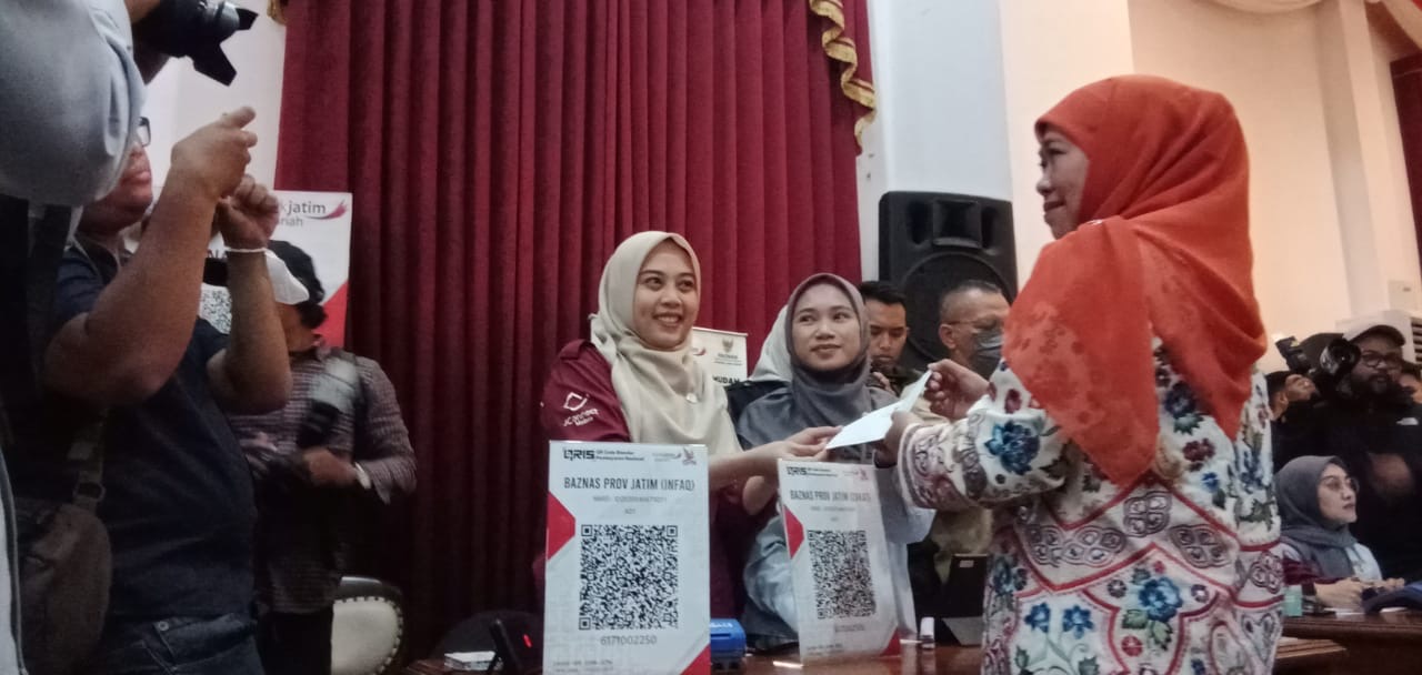 Khofifah menyampaikan “Dalam menyerahkan zakat masing-masing punya cara, yang penting zakat itu sampai kepada penerima, NU punya lembaga, Muhammadiah juga punya lembaga. Dari pemerintah sendiri punya Baznas, dipastikan bahwa zakat infaq dikelola oleh institusi yang betul.”