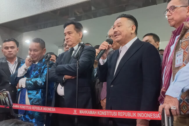 “Ada 45 orang dalam Tim Pembela Prabowo-Gibran pada malam hari ini, telah menyerahkan surat permohonan untuk menjadi pihak terkait dalam dua perkara yang diajukan ke Mahkamah Konstitusi,” kata Ketua Tim Pembela Prabowo-Gibran Yusril Ihza Mahendra.