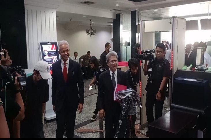 Ganjar dan Mahfud tiba di MK di Jakarta pada pukul 11.35 WIB. Mereka didampingi oleh Deputi Hukum Tim Pemenangan Nasional (TPN) Ganjar-Mahfud Todung Mulya Lubis dan Wakil Deputi Hukum TPN Henry Yosodiningrat.