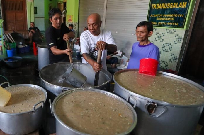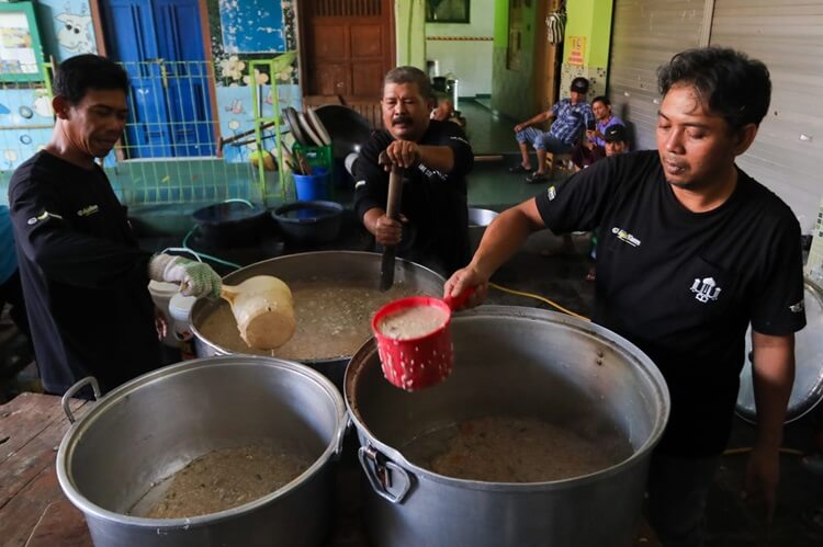 “Setiap hari antre bubur. Bubur ini rasa rempahnya bikin kita ingin datang lagi,” tutur pengantre bubur Rita Dwi Wulandari asal Telukan, Kecamatan Grogol, Kabupaten Sukoharjo, di lokasi.
