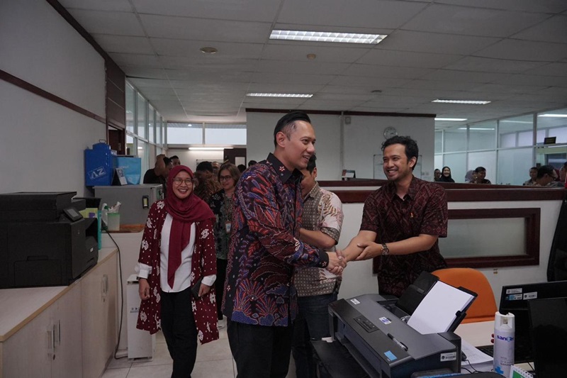Jakarta, Nawacita Menjelang libur Lebaran, Menteri Agraria dan Tata Ruang/Kepala Badan Pertanahan Nasional (ATR/BPN), Agus Harimurti Yudhoyono (AHY) melakukan office tour di Kantor Kementerian ATR/BPN, Jakarta pada Jumat (05/04/2024). Peninjauan ini merupakan kegiatan yang rutin ia lakukan untuk melihat langsung kinerja para pegawai. Kali ini peninjauan dilakukan sekaligus bersilaturahmi sebelum para pegawai mudik ke kampung halaman.