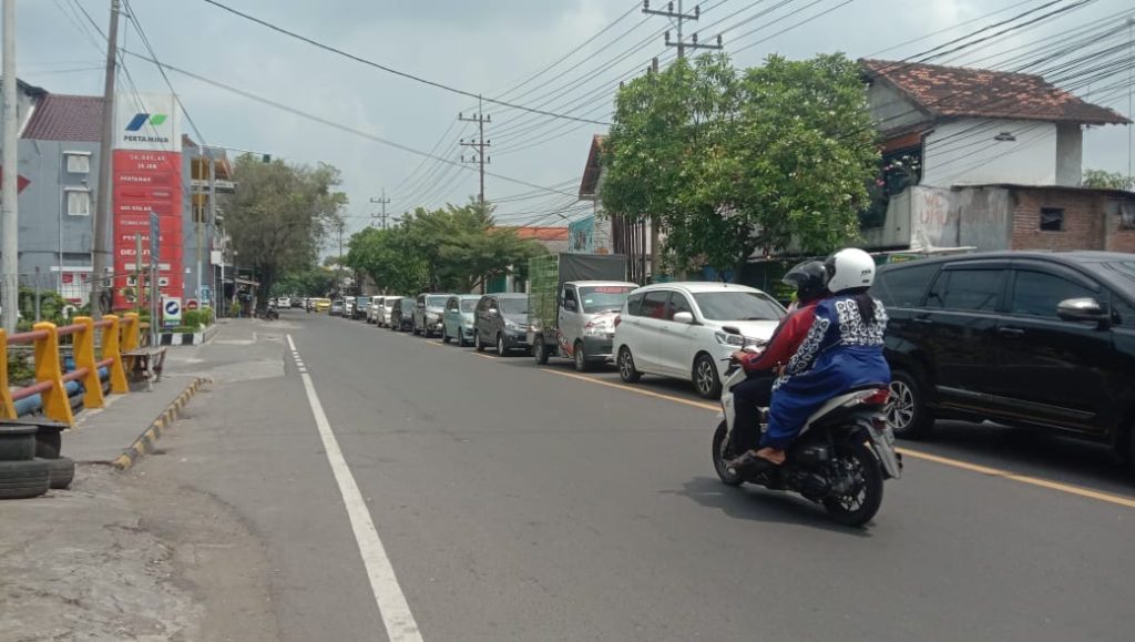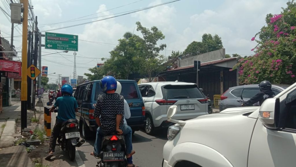 Antrian kendaraan sepanjang Jl. Gatot Subroto terpantau padat tapi tetap kondusif. Kepadatan terlihat dari arah Kota Kediri Menuju Jl. Raya Kediri – Nganjuk dan Jl. Merbanu.