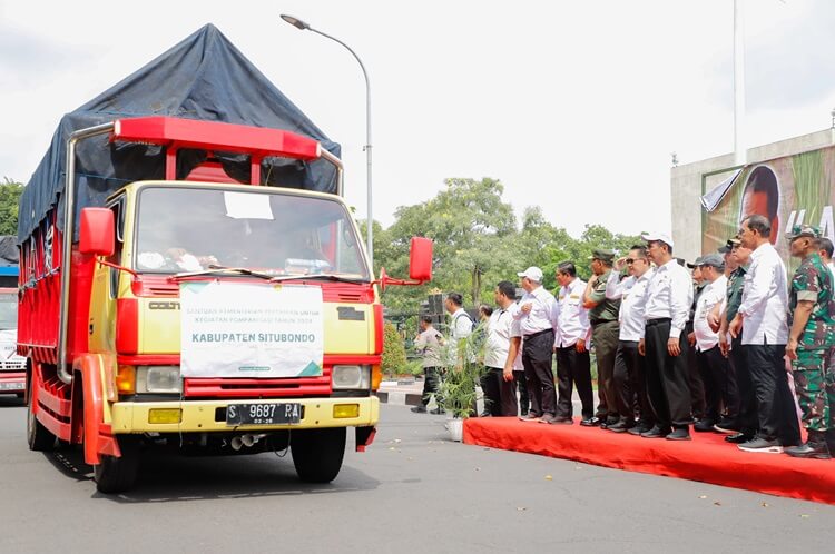 Mentan dan Pj Gubernur Adhy Lepas Pemberangkatan Truk Pengangkut Benih Jagung dan Padi