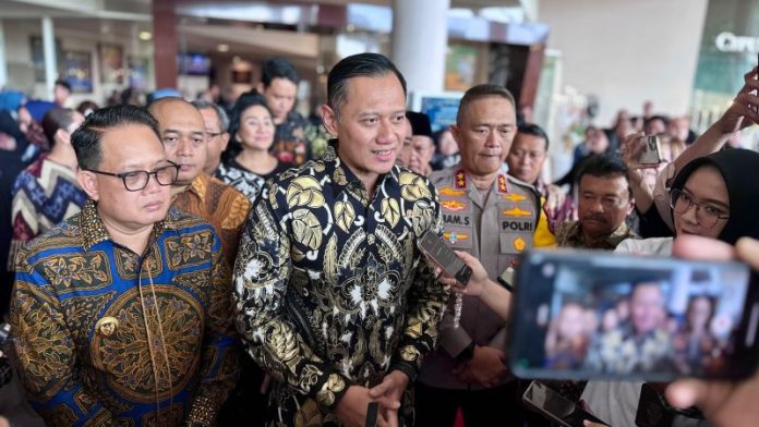 Surabaya, Nawacita 19 April 2024 – Penjabat (Pj) Gubernur Jawa Timur Adhy Karyono bersama Menteri Agraria dan Tata Ruang/ Kepala Badan Pertanahan Nasional (ATR/BPN) Agus Harimurti Yudhoyono menghadiri perayaan paskah bersama umat Nasrani sekaligus menyerahkan sertipikat tanah untuk tempat atau rumah peribadatan di Hall Ciputra, Surabaya, Jumat (19/4).