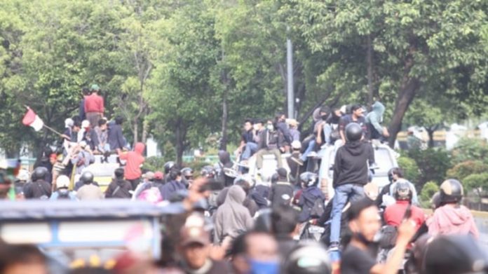 Jakarta, Nawacita – Massa demo sengketa Pilpres 2024 di MK menerobos pagar kantor Kemenparekraf di Jakarta Pusat. Mereka memaksa membuka pagar di Jalan Medan Merdeka Barat pukul 12.30
