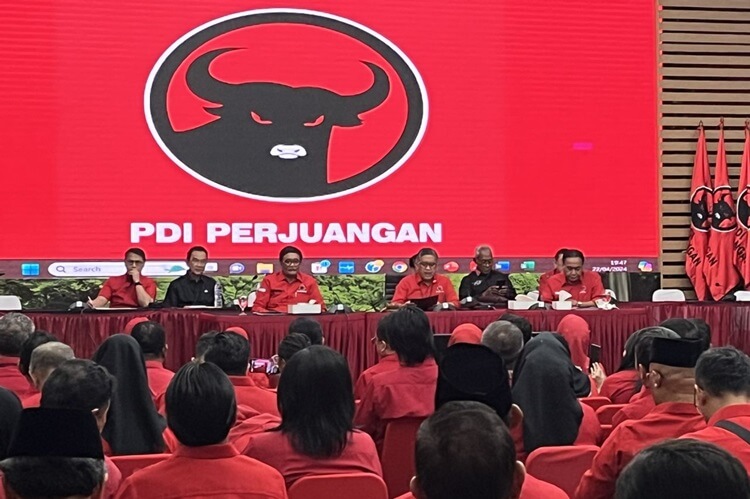 Pernyataan itu disampaikan Sekjen PDIP, Hasto Kristiyanto dalam jumpa pers usai usai Rakornas di kantor DPP PDIP, Senin (22/4/2024) malam.