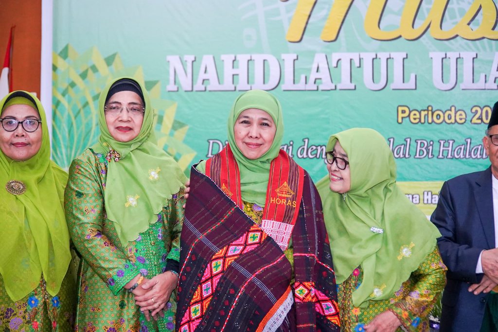 Hangatnya suasana begitu terasa dalam forum halal bi halal yang juga pelantikan pengurus PW Muslimat NU Sumut kali ini. Terutama saat di akhir acara, Ketua PW Muslimat NU Sumut beserta jajaran sempat menyelimuti Khofifah dengan kain ulos sebagai tanda kasih sayang dan penghormatan.