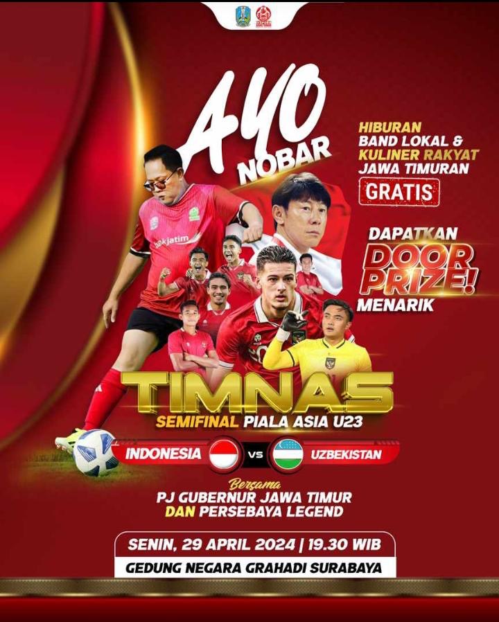Berikut daftar 10 Kota di Jawa Timur yang mengadakan Nobar bareng Indonesia VS Uzbeskistan:
