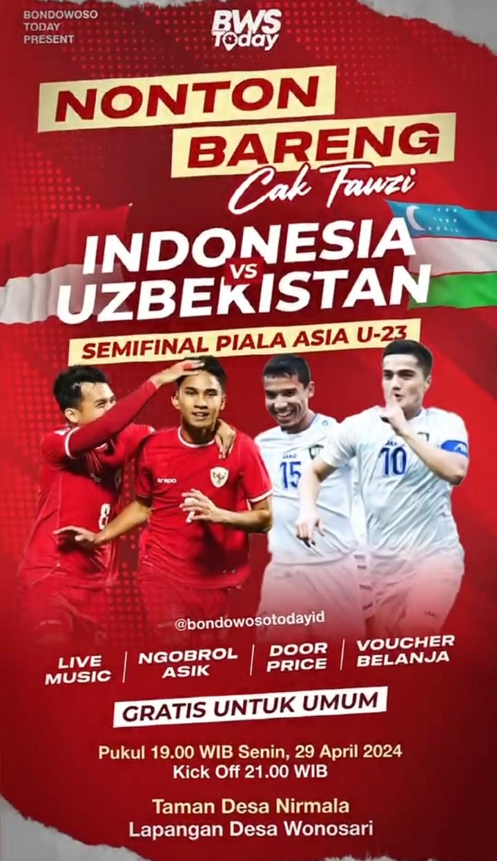 Kegembiraan itu membuat banyak masyarakat berencana menonton bareng (nobar) saat Garuda Muda melawan Uzbekistan, Senin (29/4/2024) malam.