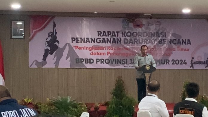 Batu, Nawacita – Badan Penanggulangan Bencana Daerah (BPBD) Provinsi Jawa Timur menggelar Rapat Koordinasi (Rakor) Penanganan Darurat Bencana bersama Kelompok Kerja (Pokja) wartawan DPRD Jawa Timur dan Pemerintah Provinsi Jawa Timur di Hotel Batu Suki Kota Batu Selasa (7/5/2024).