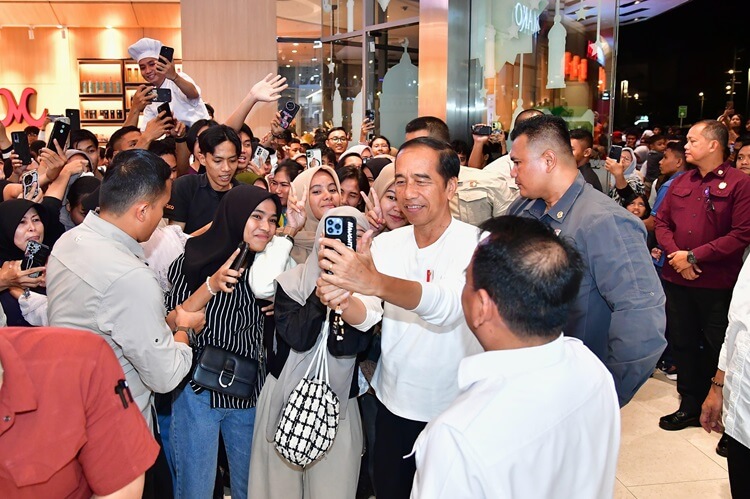 Kendari, Nawacita | Dalam kunjungan tidak terjadwalnya, Presiden Jokowi menyapa warga Kota Kendari, Provinsi Sulawesi Tenggara di pusat perbelanjaan The Park pada Minggu malam (12/5/2024). Kehadiran Presiden Jokowi, yang tiba sekitar pukul 19.00 WITA, mengejutkan banyak pengunjung yang sedang menikmati waktu mereka di pusat perbelanjaan tersebut.