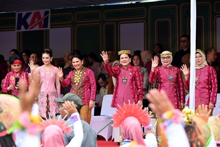 Ibu Iriana Joko Widodo dan Ibu Wury Ma’ruf Amin beserta para anggota Organisasi Aksi Solidaritas Era Kabinet Indonesia Maju (OASE KIM) secara langsung melepas rombongan parade tersebut.