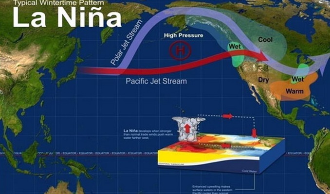 Ketika terjadi fase La Nina, hembusan angin pasat dari Pasifik timur ke arah barat sepanjang ekuator menjadi lebih kuat dari biasanya. Menguatnya angin pasat yang mendorong massa air laut ke arah barat, maka di Pasifik timur suhu muka laut menjadi lebih dingin. Bagi Indonesia, hal ini berarti risiko banjir yang lebih tinggi, suhu udara yang lebih rendah di siang hari, dan lebih banyak badai tropis.