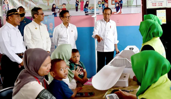“Stunting ini kan tidak hanya urusan makanan, tambahan urusan gizi, juga menyangkut sanitasi, lingkungan dari kampung, lingkungan dari RT juga berpengaruh terhadap masalah air yang ada juga sangat berpengaruh sekali terhadap stunting. Ini memang kerja bareng-bareng, kerja bersama, kerja terintegrasi, kerja terkonsolidasi sehingga hasilnya akan kelihatan,” ucap Presiden.