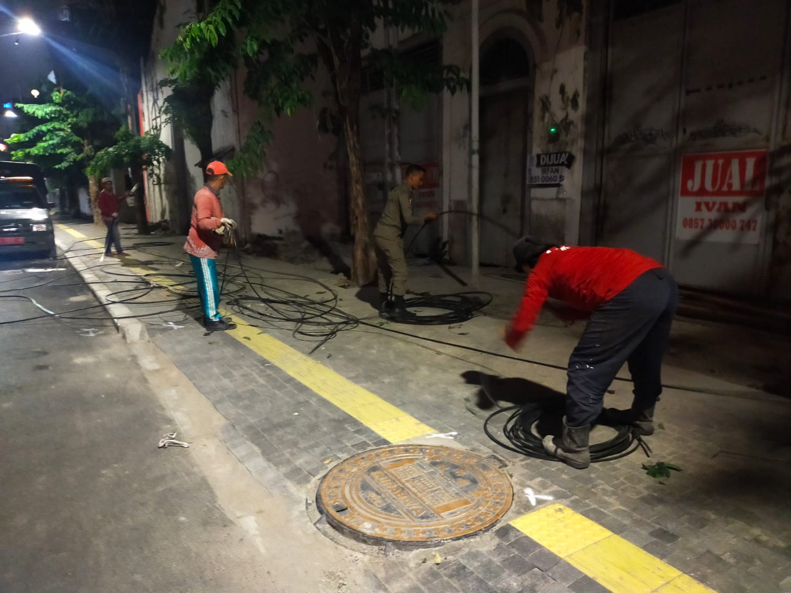 Agenda penertiban tersebut berlangsung pada hari, Rabu Malam (12/6/2024) di Jalan Karet. Penertiban kabel jaringan dimulai sejak pukul 8 malam.