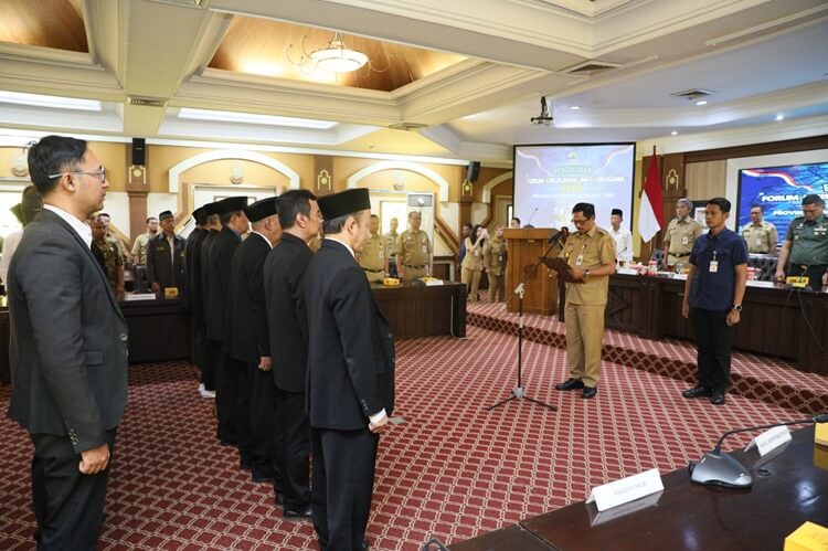 Hal itu disampaikan Pj Gubernur Jateng, Nana Sudajana, saat mengukuhkan pengurus Forum Kerukunan Umat Beragama (FKUB) Jawa Tengah periode 2024-2029, di Gedung B Lantai 5, Kompleks Kantor Gubernur, Senin (24/6/2024). Ada 21 orang pengurus yang dikukuhkan saat itu.