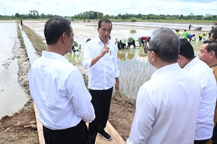 Dalam keterangannya di hadapan awak media usai peninjauan, Presiden Jokowi mengatakan bahwa saat ini semua negara terdampak gelombang panas dan kekeringan panjang. Karena itu, semua negara mengalami penurunan produksi beras.