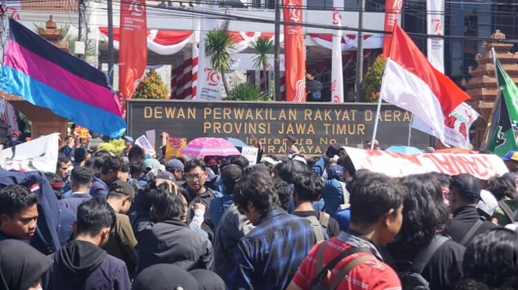 Para peserta aksi meminta agar ada perwakilan dari anggota DPRD Provinsi yang hadir untuk menemui peserta aksi yang telah menunggu di depan kantor DPRD Provinsi Jawa Timur.