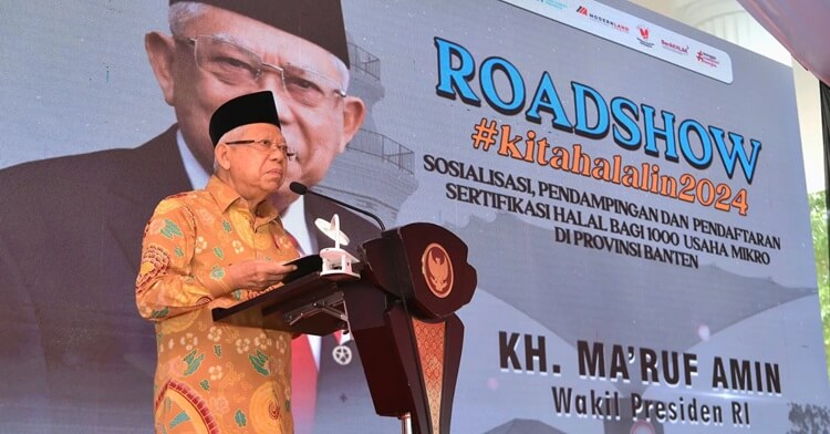 “Saya mewakili masyarakat Banten yang ditakdirkan untuk menjadi Wakil Presiden, saya mengucapkan terima kasih atas dukungan semua,” ucap Wapres saat mengawali sambutannya pada acara Sosialisasi Pendampingan dan Pendaftaran Sertifikasi Halal bagi 1.000 Usaha Mikro di Provinsi Banten, di Pendopo Kantor Gubernur Banten, Jl. Syekh Moh. Nawawi Albantani No. 1, Sukajaya, Kecamatan Curug, Serang, Selasa (3/9/2024).
