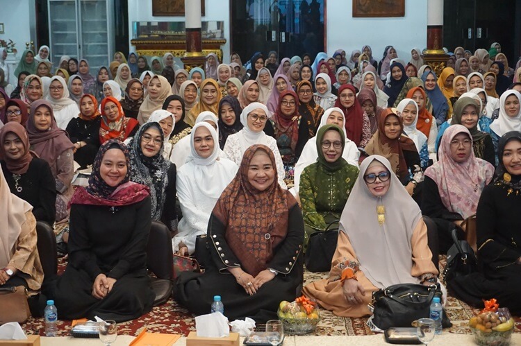 Palembang, Nawacita | Pj Tim Penggerak PKK (TP-PKK) Provinsi Sumsel Melza Elen Setiadi menghadiri kegiatan Peningkatan Ketaqwaan kepada Allah SWT bagi Anggota DWP dalam rangka Peringatan Maulid Nabi Muhammad S.A.W bertempat di Griya Agung Palembang (12/9/2024).