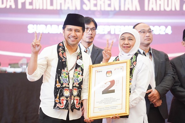 “Kami Khofifah dan Emil siap untuk mengemban amanah melanjutkan perjuangan kita bersama. Mari kita bergerak bersama, bekerja bersama dan berjuang bersama melanjutkan Jawa Timur yang maju, berprestasi, makmur dan adil serta sejahtera,” pungkas Khofifah.
