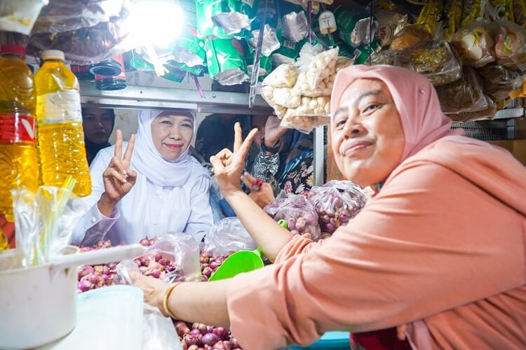 “Kita hari ini ke pasar bukan karena hanya karena kampanye, tidak. Tapi kita ke sini untuk memastikan harga-harga, kebutuhan pangan, kebutuhan pokok, terutama sembako. Kalau kita ingin tau dinamika harga bahan pokok maka kita harus cek langsung ke pasar,” kata Khofifah.