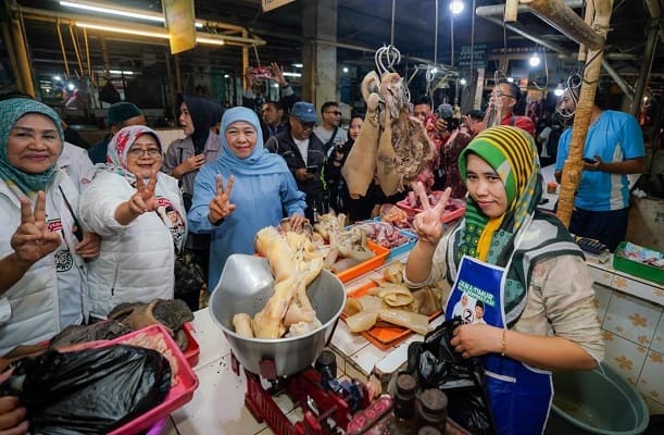 Histeris Pedagang Pasar Besar Malang Sambut Khofifah, Gelorakan Semangat Harus Menang