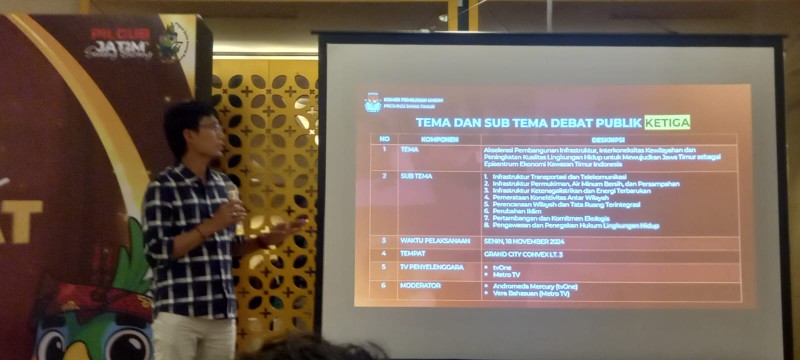 ” Debat kali ini akan mengangkat subtema “Akselerasi Pembangunan Infrastruktur, Interkoneksitas Kewilayahan, dan Peningkatan Kualitas Hidup” untuk mewujudkan Jawa Timur sebagai epicentrum ekonomi kawasan timur Indonesia,” ucap Nur Salam, Minggu, (17 November 2024)