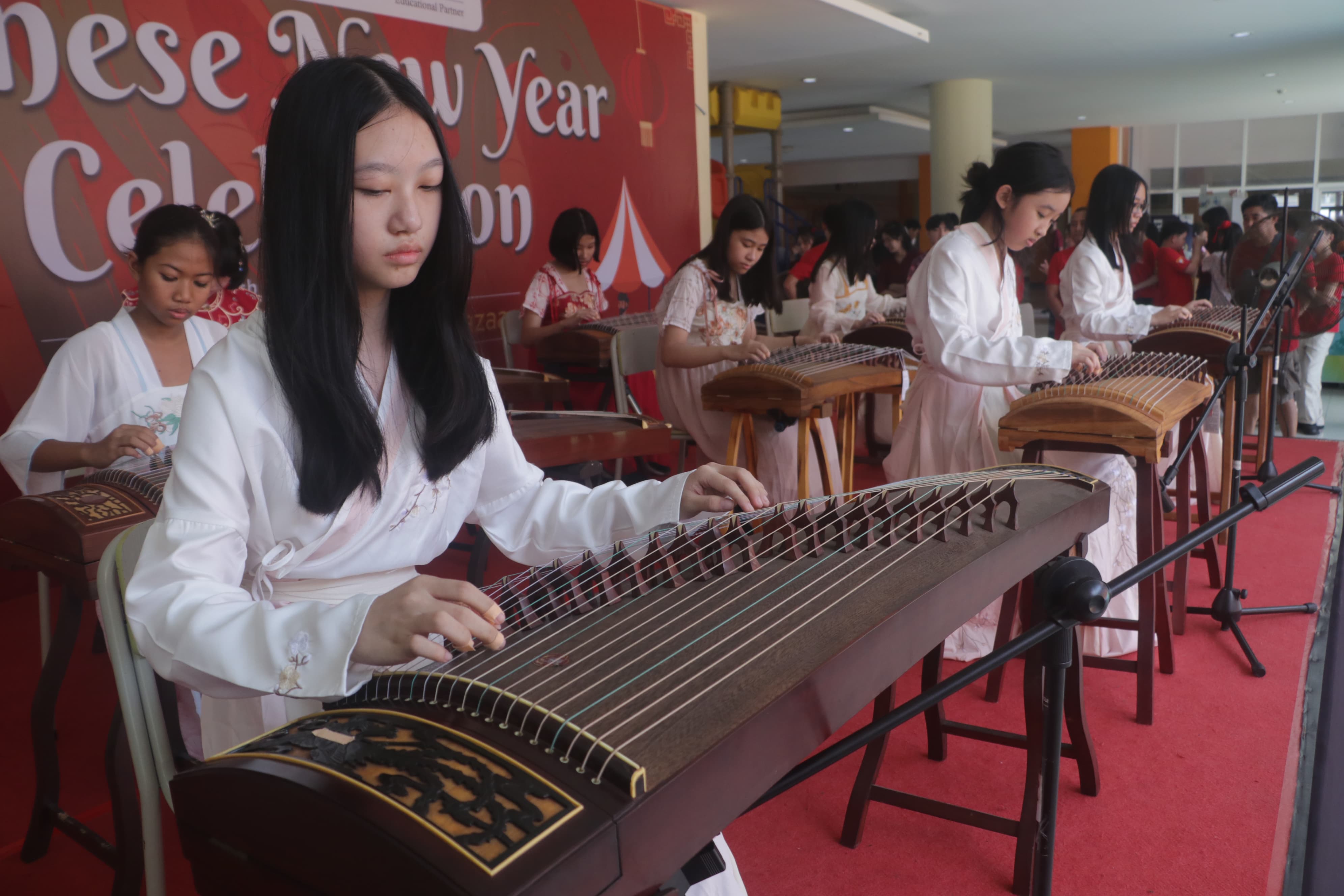 Siswi NSA Surabaya Bermain Musik Guzheng di Perayaan Imlek 2025