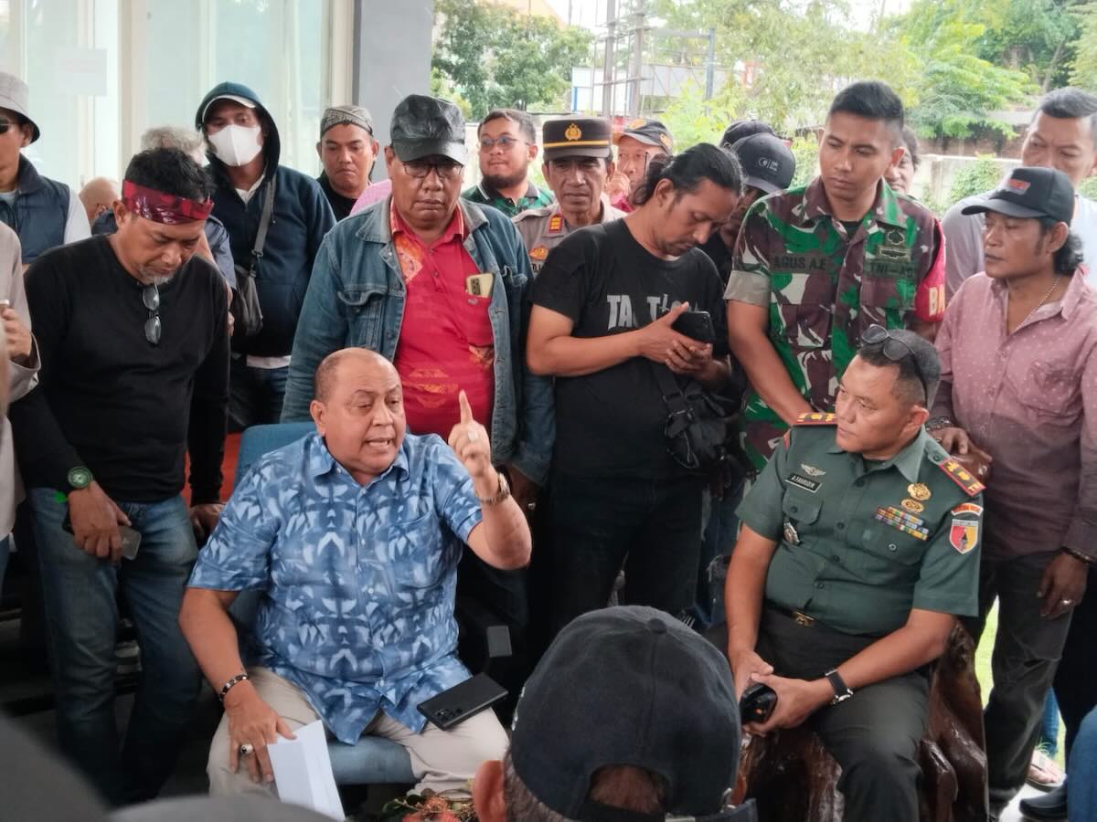 Salim Bahmid (batik biru) rekanan yang ditunjuk PT Agra Paripurna untuk menyelesaikan lahan di depan komplek GSI Surabaya.