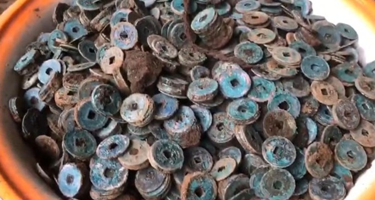Koin-koin yang ditemukan diduga mata uang China kuno. Hal ini terlihat dari huruf China dengan lubang segi empat di tengah. Koin itu diduga terbuat dari tembaga.