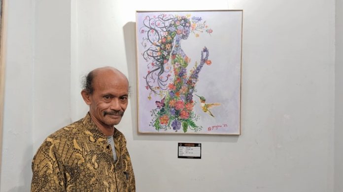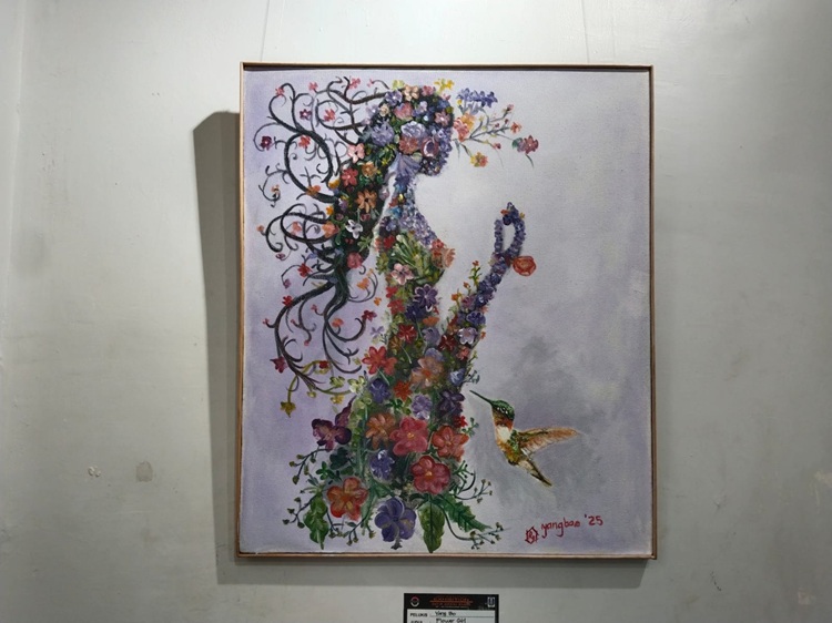 Lukisan tersebut berjudul ‘Flower Girl’, menghadirkan ilustrasi sosok wanita yang unik, di mana keindahan tubuh perempuan digantikan dengan rangkaian bunga-bunga indah.