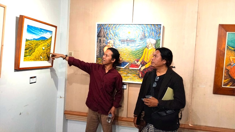 Ridwan menjelaskan ada puluhan karya dari total 18 perupa lokal, salah satunya adalah karyanya yang berjudul ‘Lembah Baliem’. “lukisan tersebut merupakan wujud keresahan dirinya atas isu lingkungan yang kembali mencuat sejak akhir 2024, seperti eksploitasi sumber daya alam dan kontroversi pagar laut di pesisir Tangerang,” jelasnya.