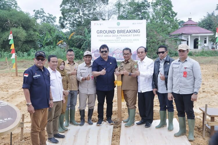Kegiatan Groundbreaking Rest Area KM 59 Desa Prangat Baru dirangkai dengan penanaman bibit kopi dan aren oleh Pj Gubernur Kaltim. kltmprv