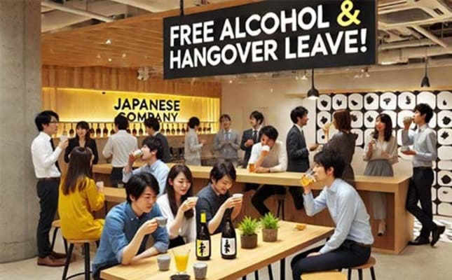 Jepang dikenal dengan budaya kerja yang ketat, namun beberapa perusahaan mulai menawarkan kebijakan yang lebih fleksibel dan inovatif. Selain alkohol gratis, beberapa kantor di Jepang juga memperkenalkan konsep seperti inemuri (tidur siang di tempat kerja) dan kehadiran kucing kantor untuk mengurangi stres. Beberapa startup bahkan memberikan insentif lebih tinggi agar karyawan mereka kembali bekerja di kantor setelah era kerja jarak jauh.