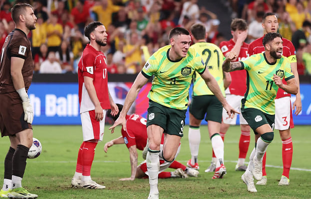 Menjelang akhir pertandingan, Jackson Irvine berhasil mencetak gol melalui sundulan setelah memanfaatkan tendangan pojok di menit ke-90.